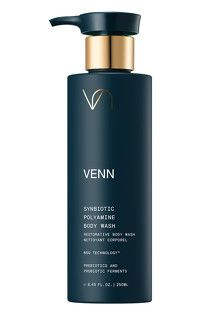 Alacsony pH-val bíró helyreállító tusfürdő, amely a VENN által szabadalmazott probiotikumok és prebiotikumok kombinációjával egyensúlyba hozza a bőr mikrobiomját.